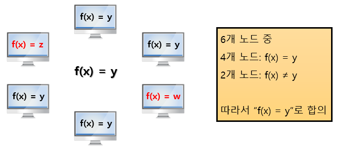 | 단일 입력값에 대하여 분산된 각 시스템이 동일한 결과 값을 결정해야 함 |
