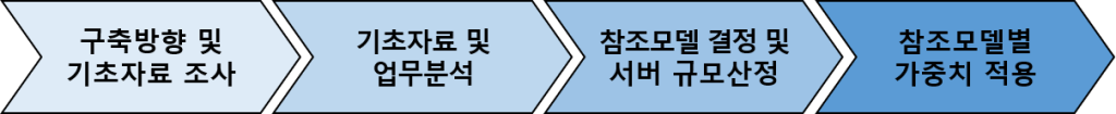 | 요소별 규모산정 | – 2 단계에서 조사된 업무 분석 자료 기반 보정 계수 설정 – CPU, 메모리, 디스크 구성요소에 대해 각각 규모 산정 수행 | |